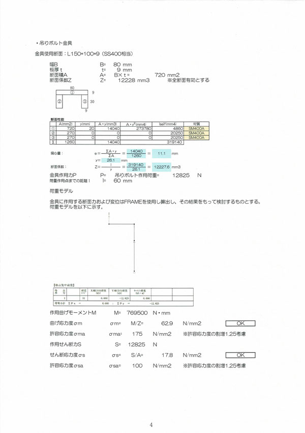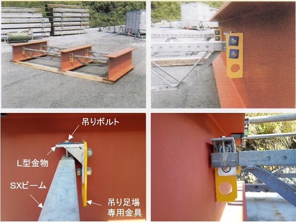 ①L型金物をM20ボルトで吊り足場専用金具に固定する【摘要箇所】